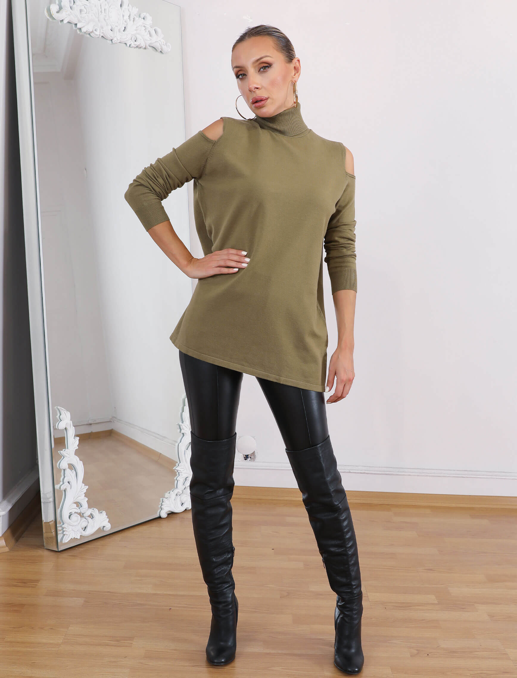 • Saksrengi Çift Omuz Dekolte Korspan Triko