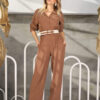 Yeşil Beli Lastikli Kemerli Dökümlü Tulum
