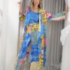 Yeşil Kırmızı Şal Çiçek Patch Kimono Takım